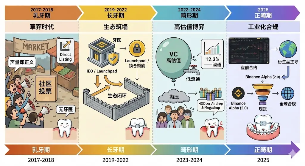Якщо порівнювати криптоіндустрію з зубами, то процес виходу на біржу (лістинг) за ці роки нагадує процес «ортодонтичного виправлення» структури галузі. Від хаотичного стану 2017 року до індустріалізованого потоку 2025-го, кожен спосіб розподілу токенів у ринку по суті є корекцією структурних деформацій галузі та викликом до структури капіталу.