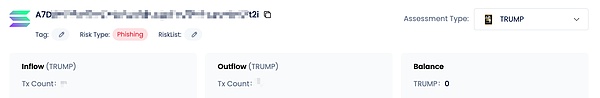 Beosin KYT здійснює оцінку ризику деякої адреси рибальства на основі монети Trump