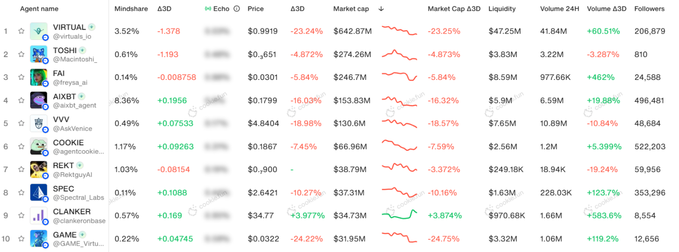 Суть проблеми Virtuals в тому, що це відображення спекулятивної бульбашки на трасі штучного інтелекту AI. За даними Cookie.fun, протягом останнього місяця загальна ринкова вартість траси штучного інтелекту AI скоротилася на 65,3%, що відповідає передбаченням Messari: “Пік популярності траси штучного інтелекту AI відбудеться в першому кварталі 2025 року через відсутність реального попиту на неї.”