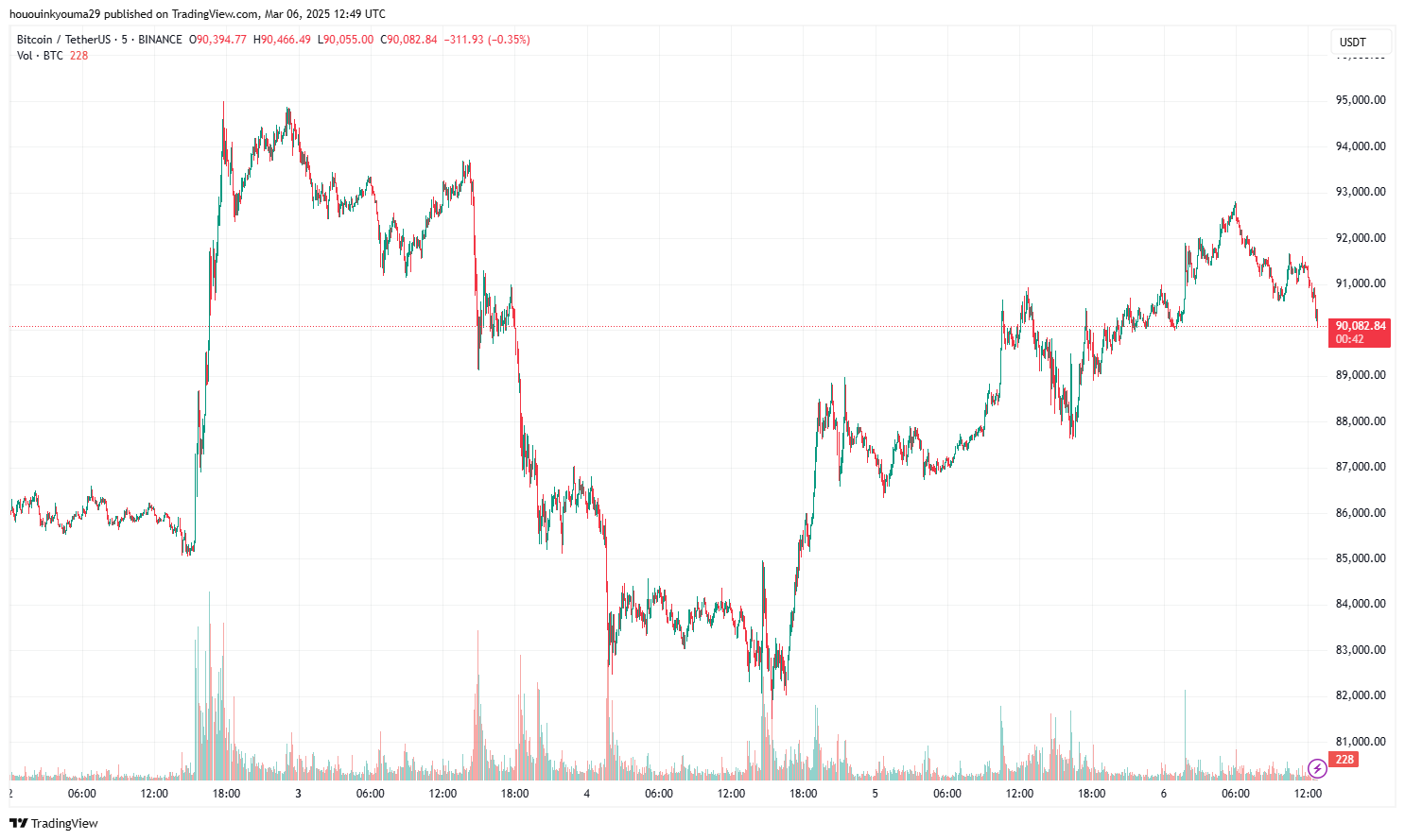 Біткойн поступово відновлюється після падіння ціни протягом останніх кількох днів, оскільки його ціна тепер знову стрімко зросла вище $90,000.