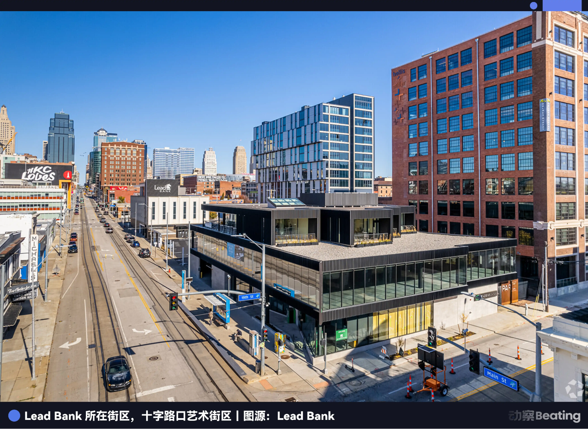 Khu Crossroads Arts District, từng là khu nhà kho xuống cấp, đã được hồi sinh vào đầu những năm 2000 nhờ các nghệ sĩ, phòng tranh và startup công nghệ, trở thành trung tâm đổi mới của Kansas City. Lead Bank đã tạo dựng một không gian độc đáo ngay tại khu vực tiên phong này.