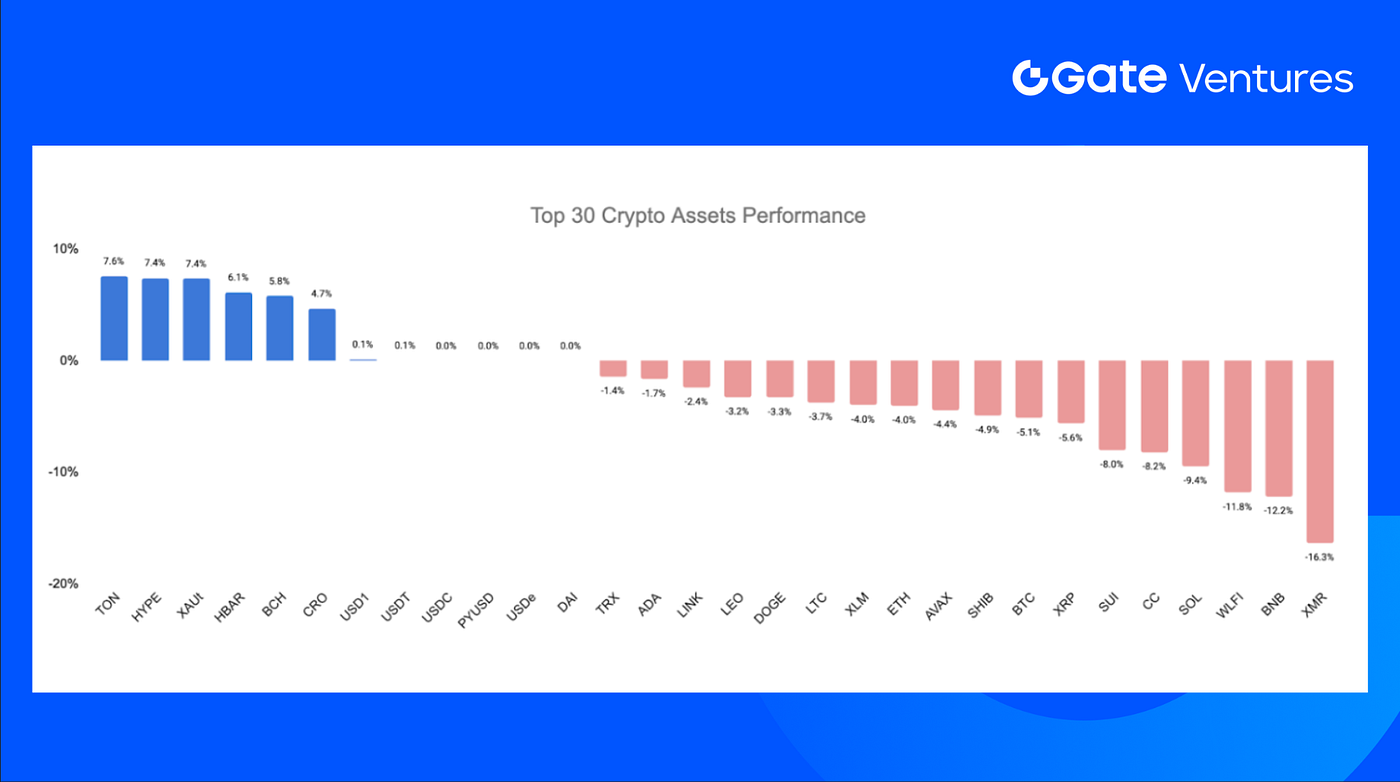 Trong top 30 tiền điện tử theo vốn hóa, giá giảm trung bình 2,8%, TON, HYPE và XAUt dẫn đầu tăng trưởng.