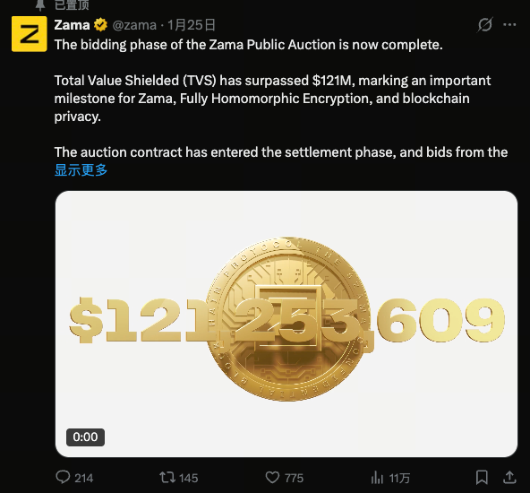 Theo công bố chính thức, ICO tiền điện tử đầu tiên của Zama kết thúc ngày 24 tháng 1 năm 2026, huy động được khoảng 118,5 triệu USD. Dữ liệu đấu giá ghi nhận hơn 11.000 người dùng duy nhất gửi gần 24.700 giá thầu, với giá thanh toán cuối cùng là 0,05 USD/token.