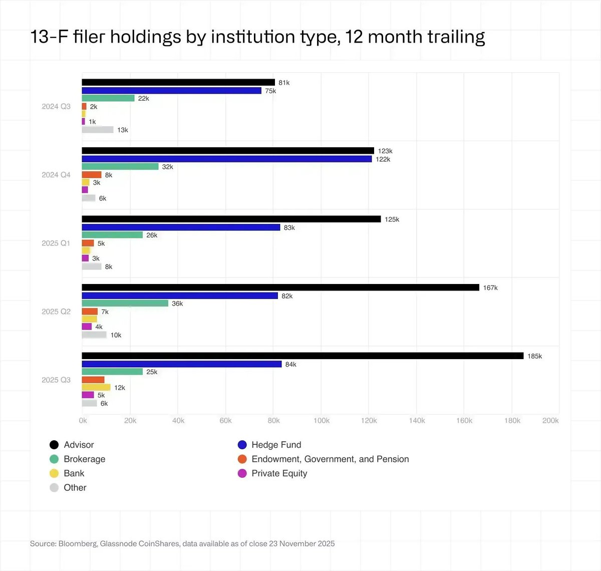 资金结构层面增量买盘更多来自被动资金、长期资产配置和企业 / 主权资产负债表管理,Crypto native 资金在价格形成中的边际作用下降,在大部分阶段成为逢高减仓的净卖方。