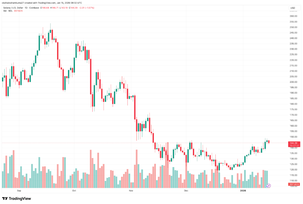 Solana là một trong những mạng lưới mạnh nhất trong crypto. Hệ sinh thái của nó tiếp tục phát triển, và các nhà phát triển vẫn hoạt động tích cực. Tuy nhiên, hành động giá lại kể một câu chuyện khác. Từ tháng 11, SOL đã giao dịch trong khoảng từ 125 đô la đến 148 đô la, mang lại lợi nhuận 0%.