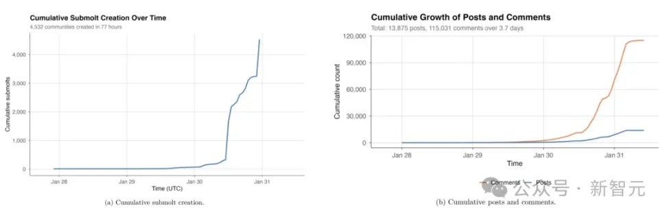 Nhà nghiên cứu David Holtz lấy dữ liệu trong 3,5 ngày trước khi Moltbook ra mắt (bao gồm 6.159 trí tuệ, 13.875 bài đăng và 115.031 bình luận), cố gắng trả lời một câu hỏi cốt lõi: