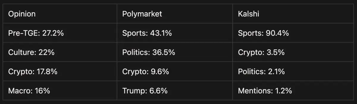 Sự khác biệt này thể hiện rõ ràng trong dữ liệu. Trong cuộc bầu cử tổng thống Hàn Quốc năm 2026, khối lượng giao dịch của Polymarket chỉ khoảng 40 nghìn USD, còn Opinion Labs đạt tới 52 triệu USD. Thị trường dự đoán không thể thắng tất cả, vì quá trình hình thành niềm tin mang tính địa phương cao.