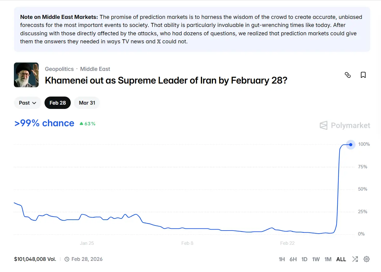 Kalshi「Lãnh đạo Iran từ chức」Hợp đồng dự đoán trị giá 50 triệu đô la gây tranh cãi! CEO: Từ chối lợi nhuận chết người