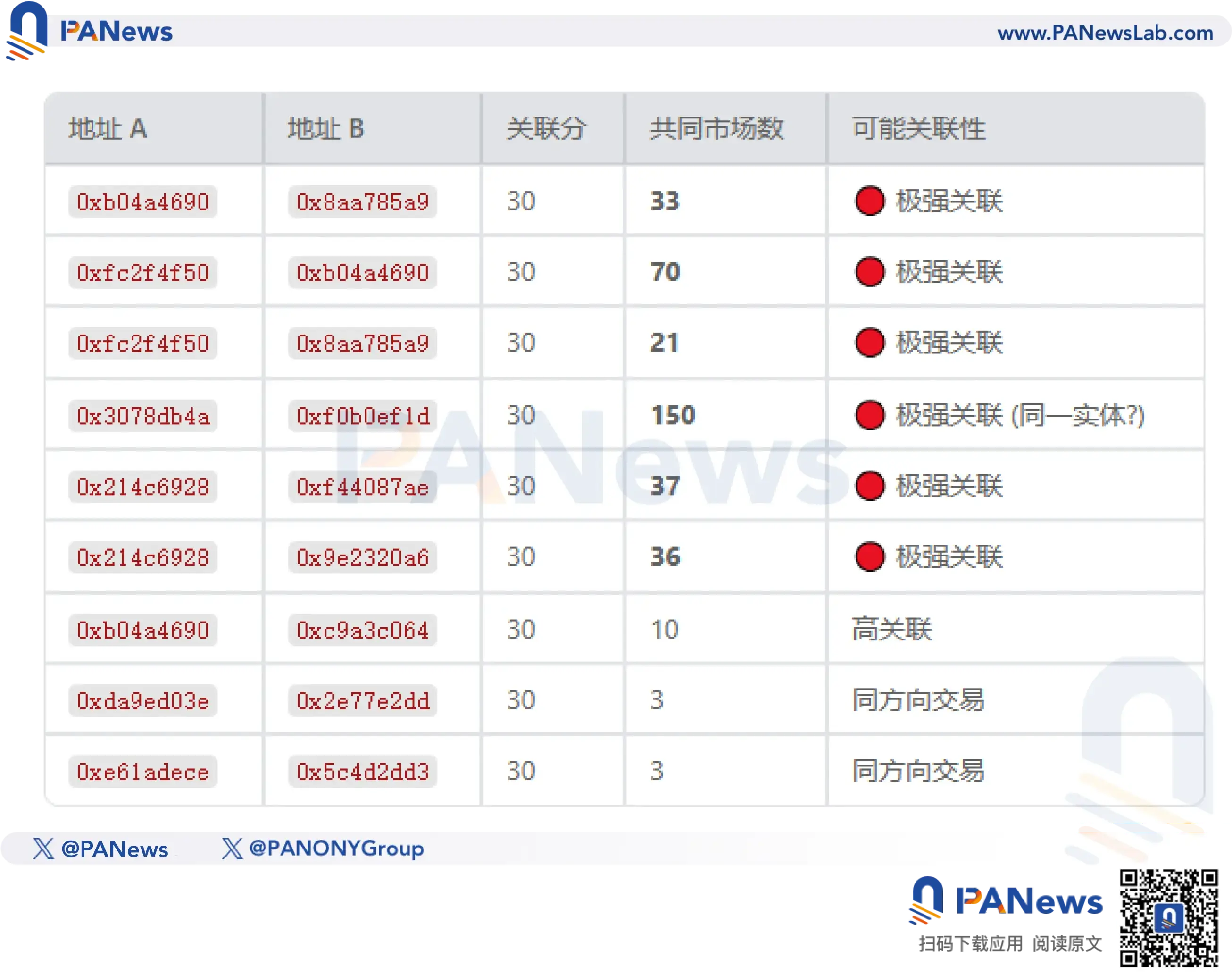 Ngoài ra, sau khi phân tích chéo dựa trên số lượng thị trường chung, hướng đi nhất quán và thời gian chồng chéo, PANews phát hiện phần lớn các tài khoản giao dịch này có thể chỉ là các mạng lưới do vài “ông lớn” kiểm soát.