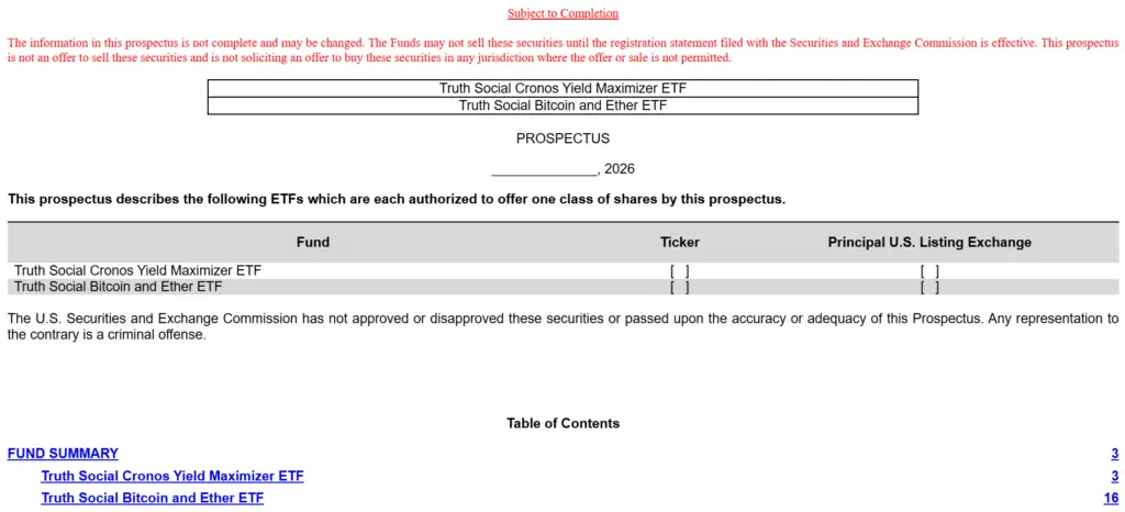 Truth Social的文件显示出对易于接触的加密投资产品的需求。赞助商在向美国投资者推广前需要SEC的批准。ETF支持者表示,受监管的产品对主流采用至关重要。批评者则指出波动性和托管问题。文件描述了分销方式和授权参与者的角色。