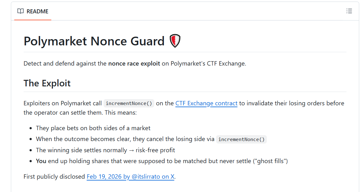 在官方无作为的情况下,社区开始自己想办法。一位社区开发者自发创建了一个名为「Nonce Guard」的开源监控工具,该工具能够即时监控 Polygon 链上的订单取消操作,建立攻击者地址黑名单,并为交易机器人提供通用预警信号。不过这种方案本质上属于加强监控的补丁,并不能从根本上彻底解决这类问题。