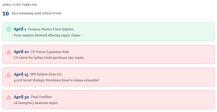 **就能源市场的未来而言,**ProfitGate Capital Services LLP创始人Nakul Sarda正在追踪以下指标的组合:(i)航运保险保费——假设在达到“警报解除”状态时保险公司会下调价格;(ii)实时船只过境监控;(iii) 迪拜与布伦特原油之间的价差;(iv)追踪其所谓的“四月中旬悬崖点”。