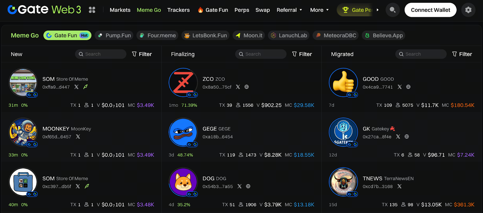 Akses Gate Meme Go: https://web3.gate.com/en/memego/gatefun