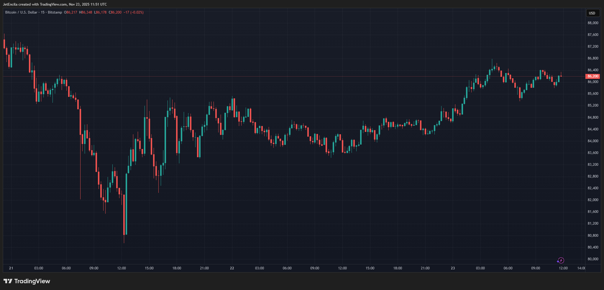 BTCUSDが24時間チャートで$86,216を記録:TradingView