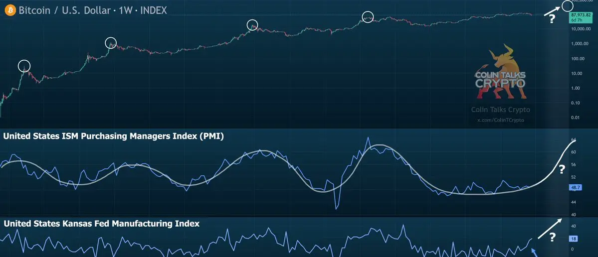 Se o ISM está de fato a liderar o caminho do Bitcoin, um cenário possível está a formar-se: um mercado em baixa mais brando do que o normal, seguido por um topo muito mais cedo, possivelmente no final de 2026 ou mesmo em 2027, acompanhado por uma verdadeira euforia em vez do sentimento contido observado neste ciclo. O efeito de seguimento poderia quebrar o ciclo tradicional de quatro anos e prolongar o ciclo mais amplo das criptomoedas numa curva de anos.