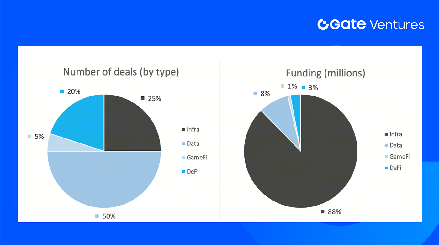 O número de negócios fechados na semana anterior foi 20, com o segmento Data a registar 10 operações, representando 50 % do total. Infra teve 5 (25 %), GameFi 1 (5 %) e DeFi 4 (20 %).