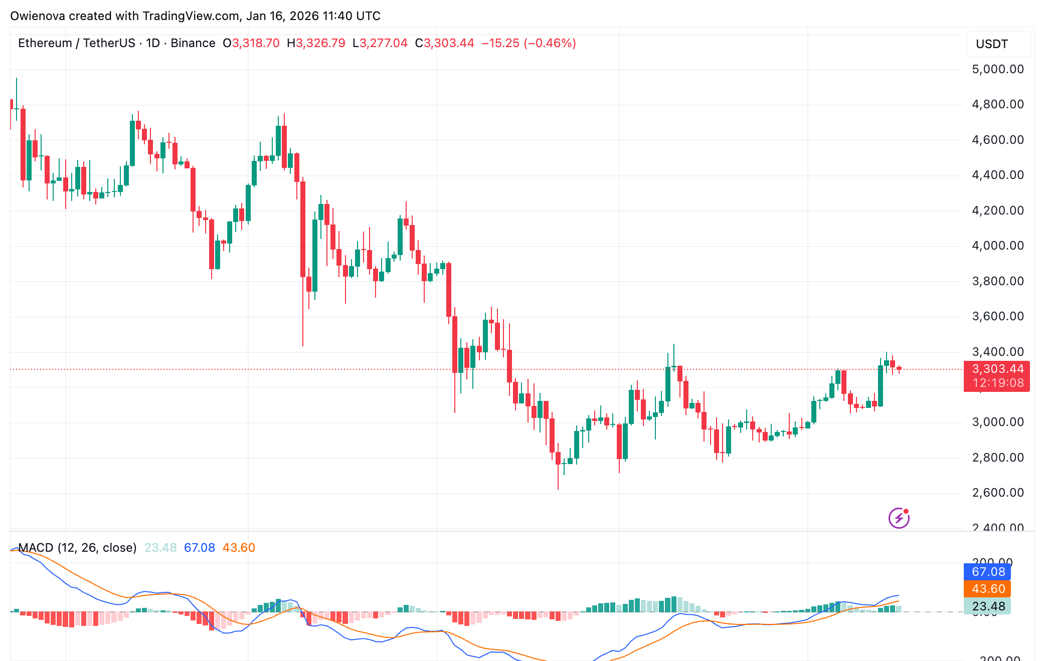 O Ethereum está preso no meio, com o preço a oscilar em torno de $3.300, que é ligeiramente mais alto do que no início deste mês, mas permanece comprimido dentro do mesmo triângulo que tem vindo a formar desde novembro. Um investidor mencionou no X que este tipo de ação de preço geralmente significa que a pressão está a aumentar e uma movimentação está a chegar. No entanto, a direção ainda não foi especificada.