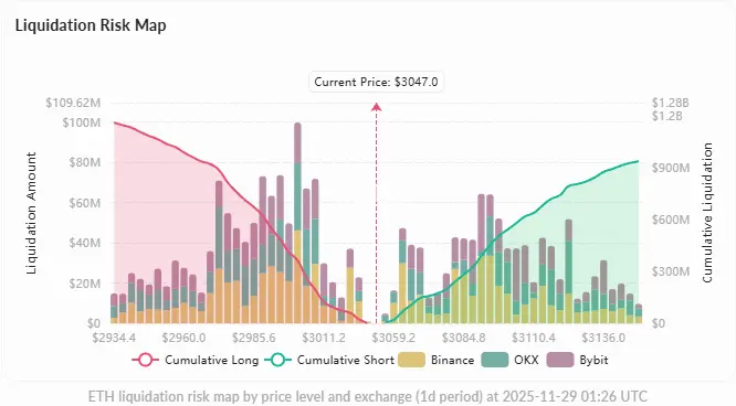 После突破$3082 сопротивления цель $3100, благодаря положительному расхождению MACD и поддержке ликвидации коротких позиций. График ликвидационных рисков показывает, что вблизи $3056 лишь $4.8M коротких позиций, преодоление сопротивления незначительное.