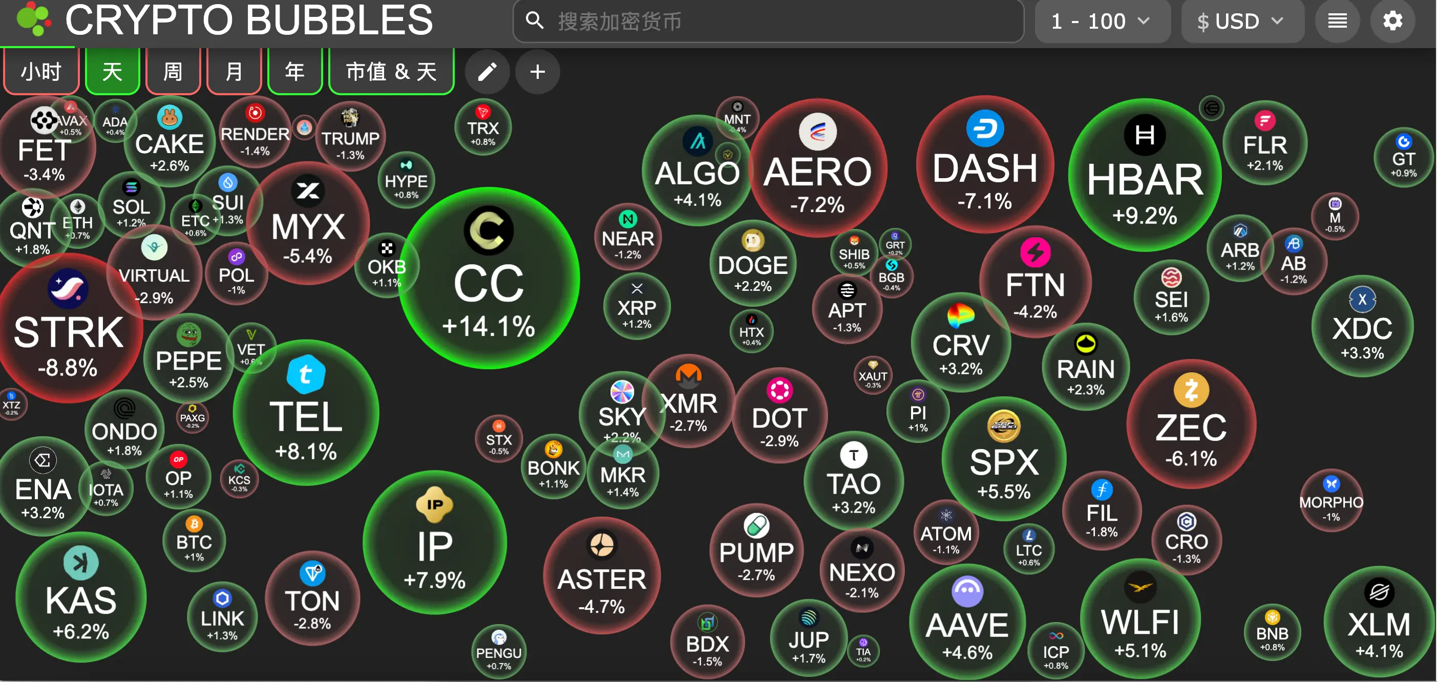 Biến động lớn nhất trong 100 đồng tiền hàng đầu hôm nay: Starknet giảm 8.8%, Aerodrome Finance giảm 7.2%, Dash giảm 7.1%, Zcash giảm 6.1%, MYX Finance giảm 5.4%.