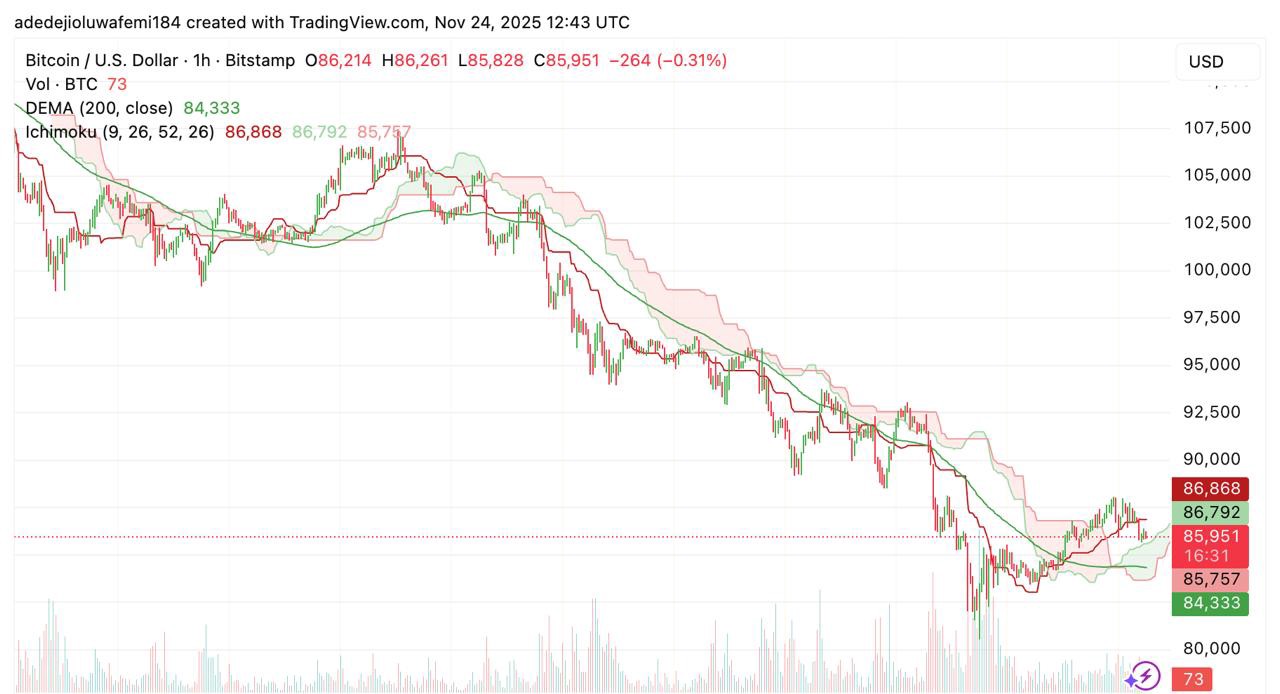 Bitcoin đang giao dịch gần $85,875 sau khi giảm từ mức cao nhất mọi thời đại là $126,198. Nó đã giảm hơn 36% trong 6 tuần, nhưng sau đó đã phục hồi hơn $7,000 chỉ trong một cuối tuần. Sự tăng gần đây xảy ra vì các nhà đầu tư kỳ vọng Cục Dự trữ Liên bang Hoa Kỳ sẽ cắt giảm lãi suất vào tháng 12. Một đợt cắt giảm lãi suất có thể mang nhiều tiền hơn vào các tài sản rủi ro như crypto, làm suy yếu đồng đô la và giúp Bitcoin.