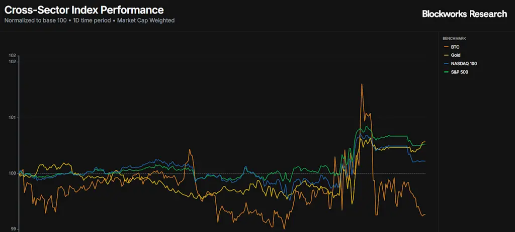 Thị trường đã thấy rõ sự chia rẽ giữa BTC và các chỉ số chính vào ngày hôm qua. BTC đóng cửa giảm -0.73% trong khi vàng, S&P 500 và Nasdaq lần lượt kết thúc tại 0.57%, 0.53% và 0.22%. Các quan chức chỉ ra thị trường lao động đang nguội đi, lạm phát vẫn trên mức mục tiêu và kỳ vọng tăng trưởng vững chắc. Thông điệp rõ ràng: thanh khoản không mở ra nhanh như dự kiến.