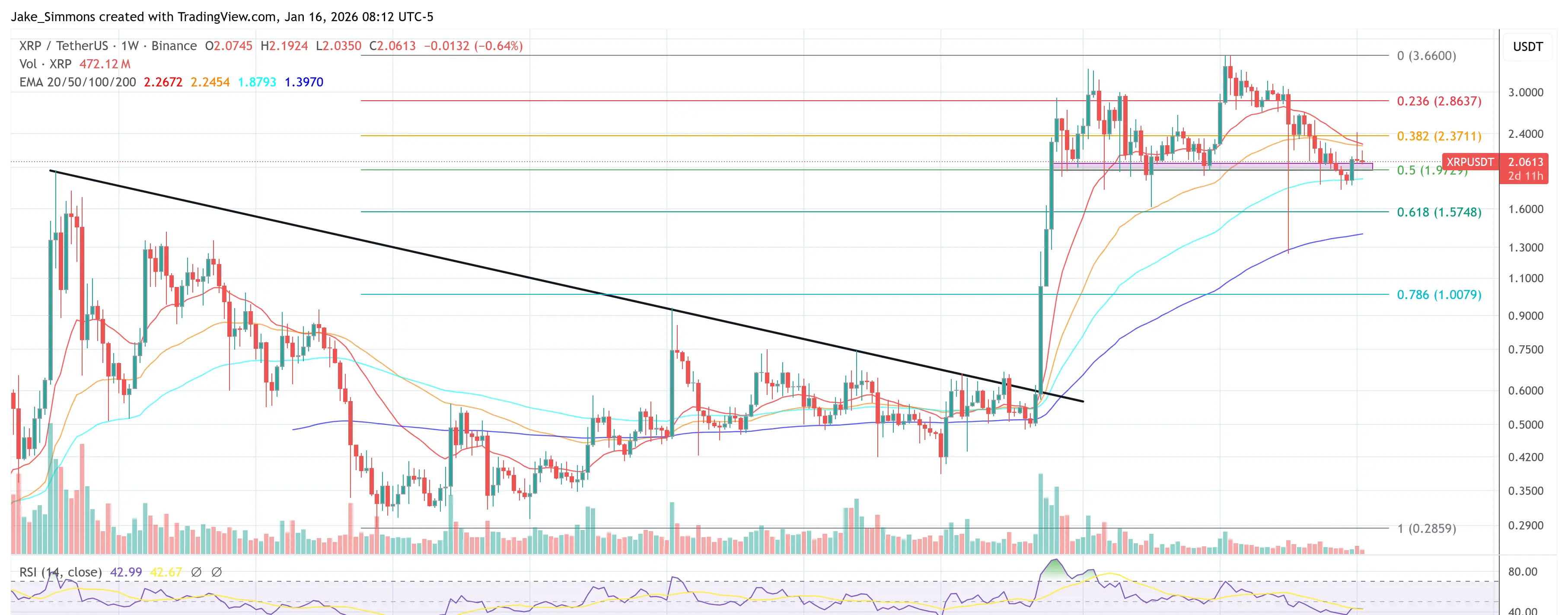 Tại thời điểm báo, XRP giao dịch ở mức $2.06.