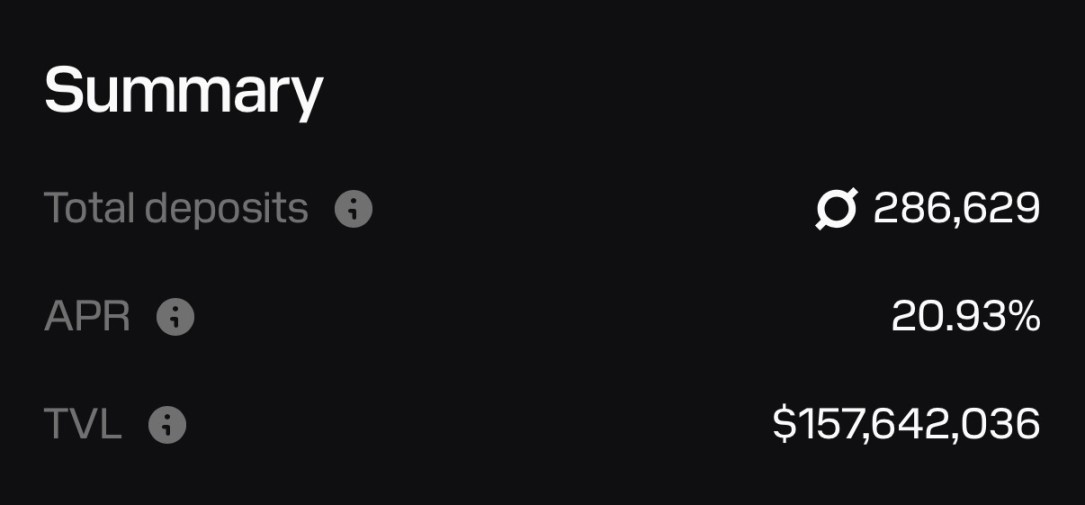 目前協議總質押量為 286,629 枚 ORE,總鎖倉價值(TVL)超過 1.5 億美元,年化報酬率(APR)達 20.93%。