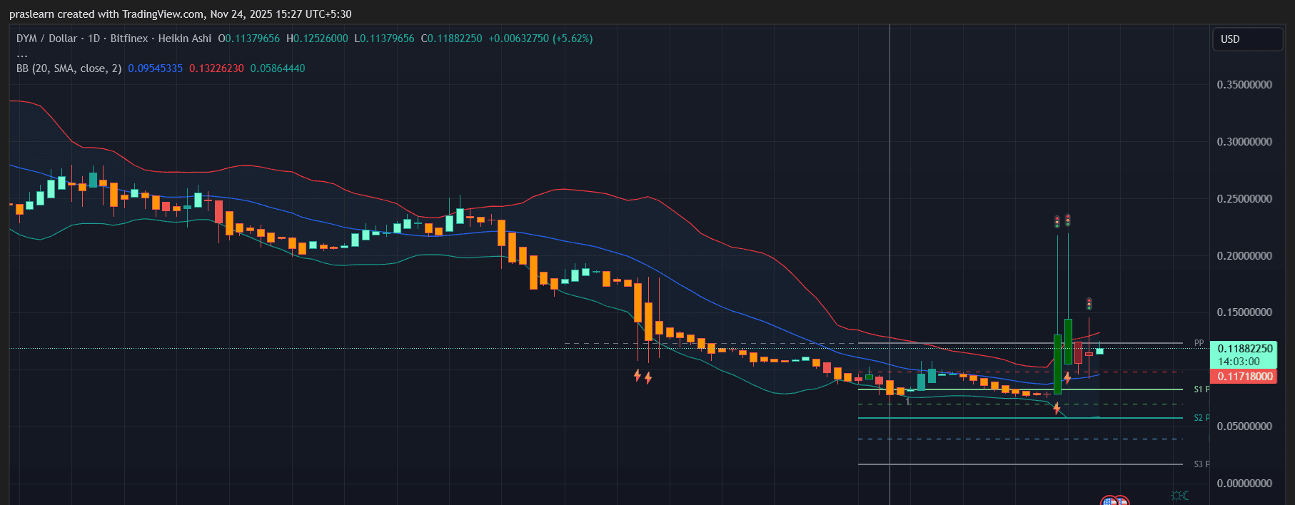 市场对此进行了回报。DYM在24小时内上涨了34%以上,在一周内上涨了近54%。看涨的MACD交叉增强了动能,但更大的图景在于RollApps生态系统以及引人注目的50% APY质押奖励。交易者将希望关注新的RollApps上线的速度,以及升级如何快速推动真实的采用。这将决定DYM是否突破持续增长周期。