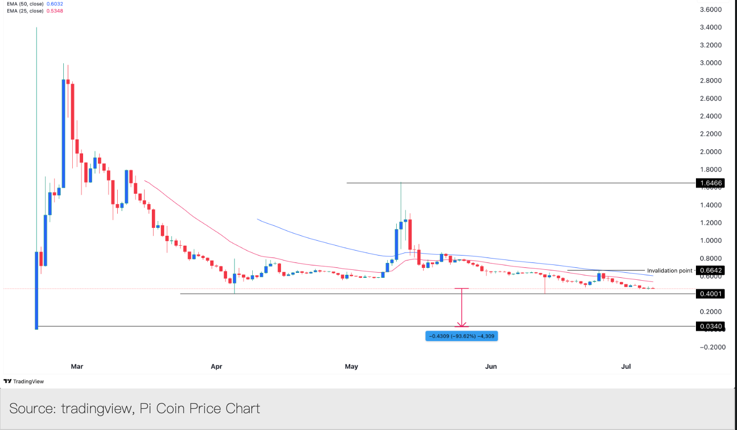 توقعات سعر PI: أكثر من 2.72 مليون عملة تم فتحها قد تكون عامل محفز، الدعم الرئيسي $0.40 في خطر