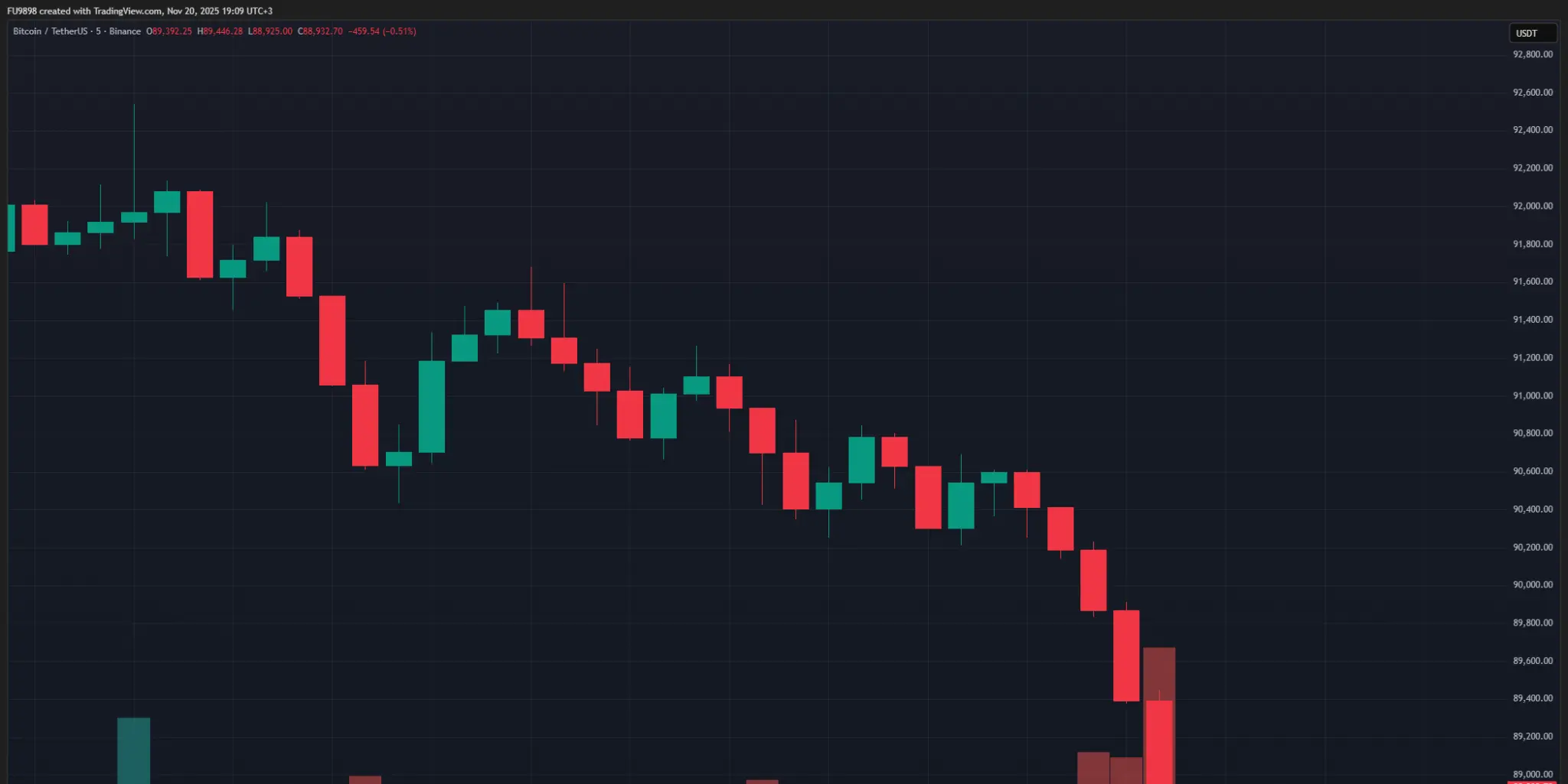 في وقت كتابة هذا، يتم تداول السعر عند 88,793 دولار. لقد أبرز هذا الانخفاض السريع مرة أخرى الضغط المتزايد للبيع وتقلبات السيولة في السوق.