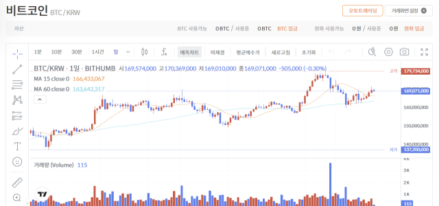 28日午前8時現在、ある取引所でBTCは169,071,000ウォンで取引されており、前日比で0.30%の下落です。