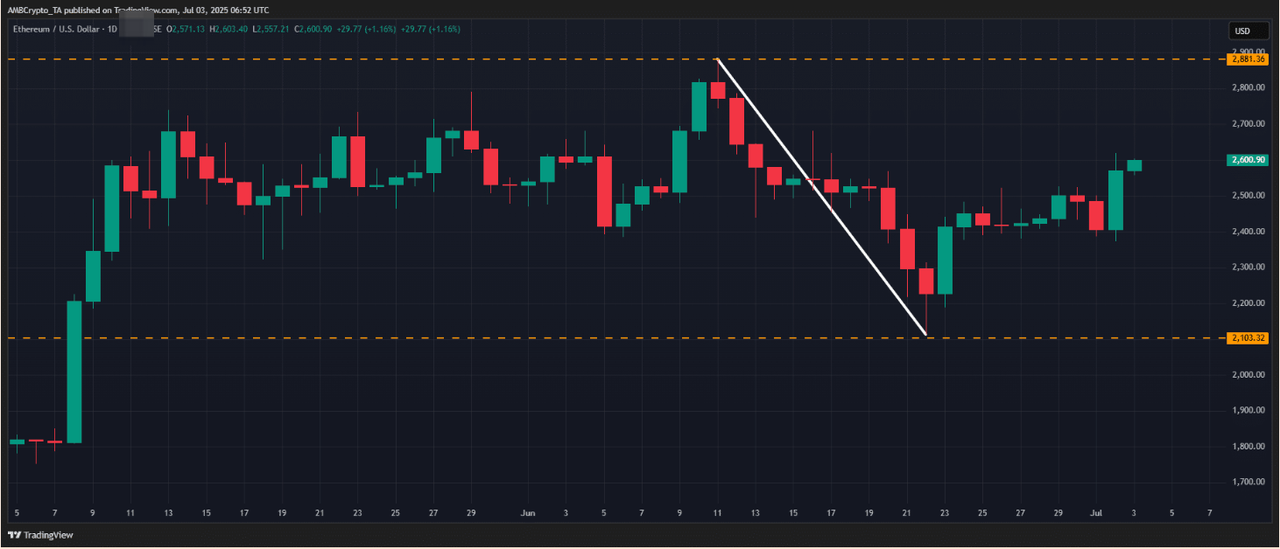 Ключевой вопрос заключается в том, сможет ли ETH превратить восстановленные 2600 долларов в платформу для устойчивого роста? Повышение рискованного аппетита на рынке делает следующий шаг Ethereum крайне важным.