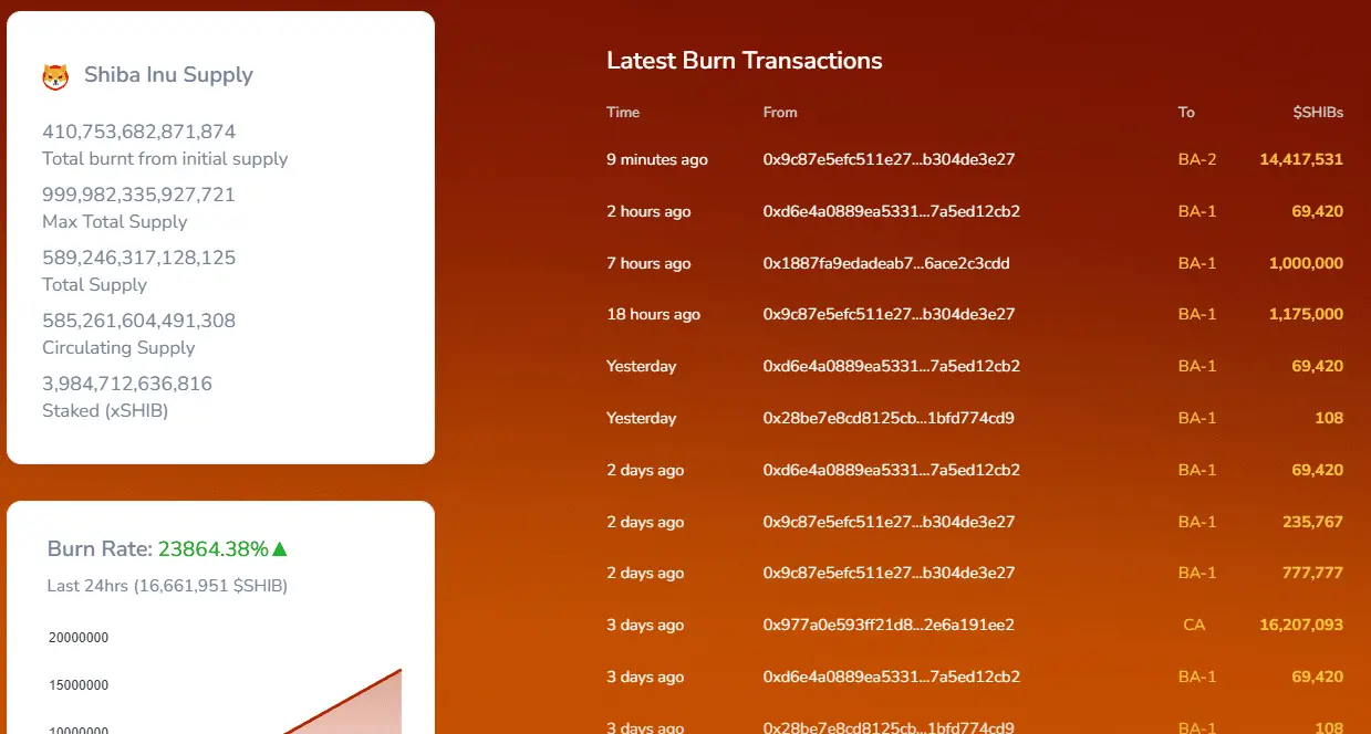 В других местах данные о сжигании SHIB указывают на значительное увеличение активности по сжиганию, с коэффициентом сжигания 23,864.38%. За последние 24 часа было сожжено всего 16,661,951 токенов SHIB.