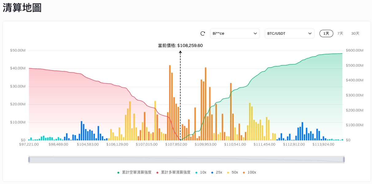 1, $BTC від високого відкату минулої ночі, орієнтовно повідомлялося про $108330, за останні 24 години підірвав $32,75 млн, що стало основним вибухом довгих замовлень;