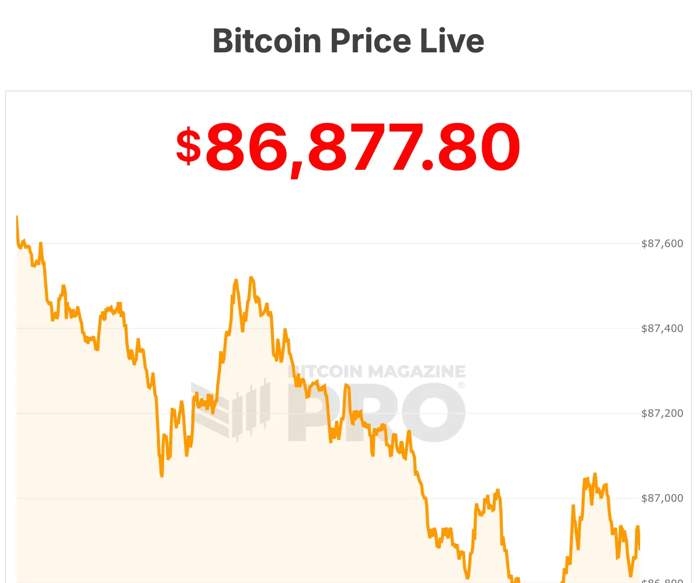 Giá Bitcoin đang giao dịch ở mức thấp là 86,610 đô la, giảm hơn 1% trong 24 giờ qua, với khối lượng giao dịch trong 24 giờ là $87 tỷ.