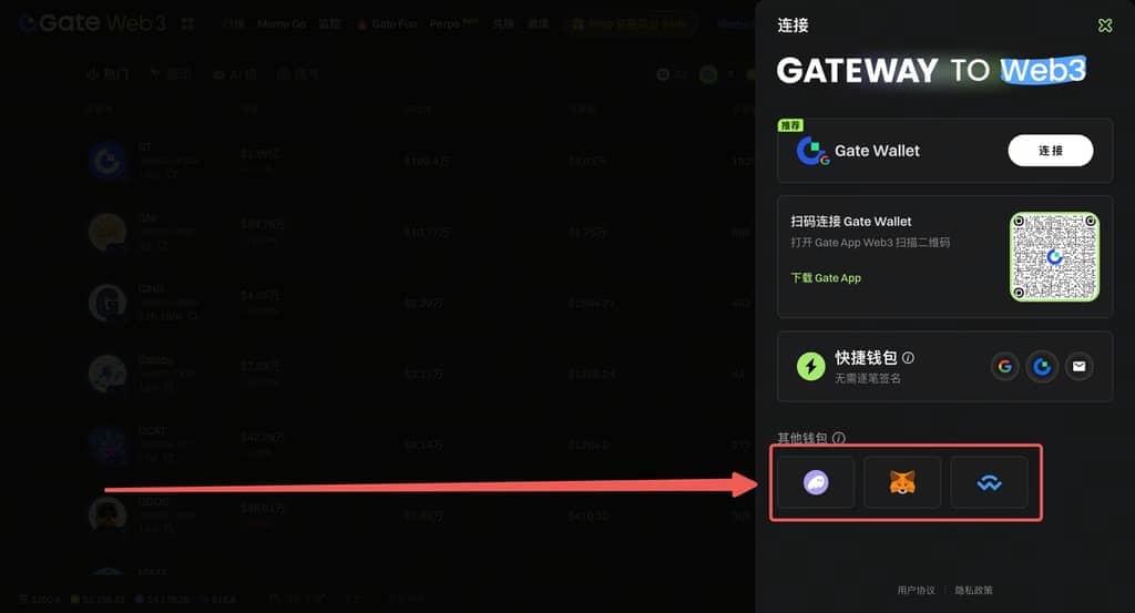 3)或選擇 Gate Wallet 插件錢包進行登入(若未下載錢包自動跳轉至 Chrome 應用商店下載)