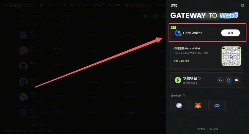 1)使用者進入 Gate Web3 網頁版,點擊右上角 【連接錢包】 按鈕