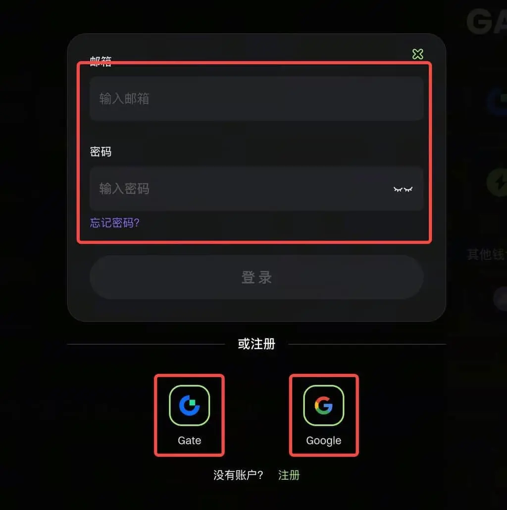 2)選擇使用平台的托管錢包登入(支持 Email、Gate 帳號與 Google 帳號註冊)
